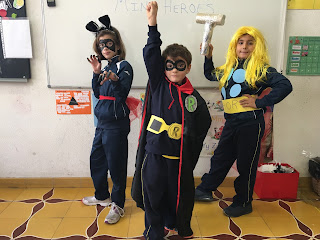 Pues en nuestra aula, algunos niños de primaria, decidimos celebrarlo también disfrazarnos. Para ello a primeros de semana pensamos que queríamos ser. Sin embargo los profesores no lo pusieron nada facil, pues no facilitaron todo el material.